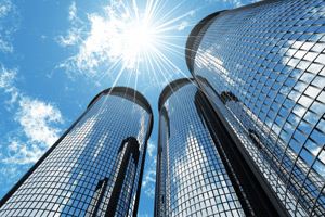 Reflective glass is glass that has been treated with a metallic coating to allow it to reflect heat, it reflects radiation rather than absorbing it. This type of glass is used in environmentally friendly construction with the goal of reducing heat gain and loss, making structures much cheaper to heat and cool over the course of the year. Reflective auto glass is also available for installation in environmentally friendly vehicles.